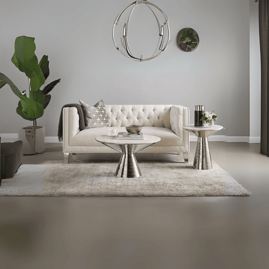 Valentine White Marble End Table with Silver Frame – Modern Accent