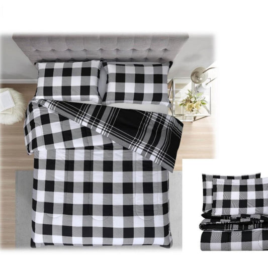 3-Piece Buffalo Plaid Reversible Comforter Set