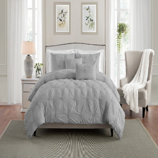 Pre washed 3 Piece Luxury Floral Ruched Comforter Set